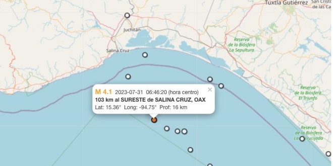 Sismo hoy 31 de julio de 2023 en Salina Cruz, Oaxaca