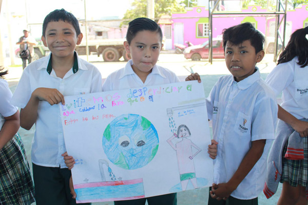 “Ustedes tienen agua en sus casas, en otros lugares, por su lejanía y su vulnerabilidad les cuesta tener el líquido, por lo que el lema va enfocado a eso, a voltear a ver a quienes les falta el agua, ser consciente de ellos y cuidar el vital líquido”, explicó el funcionario a los niños.