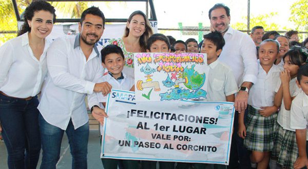 Progreso, Yucatán a 22 de marzo de 2019. En el marco del Día Mundial del Agua, el Sistema Municipal de Agua Potable y Alcantarillado de Progreso (Smapap) realizó esta mañana el concurso de carteles entre niños de primaria, con la finalidad de involucrarlos respecto al cuidado del vital líquido; evento en el que estuvo presente el alcalde Julián Zacarías Curi y su esposa, la Presidenta Honoraria del DIF municipal, Alma Rosa Gutiérrez Novelo.