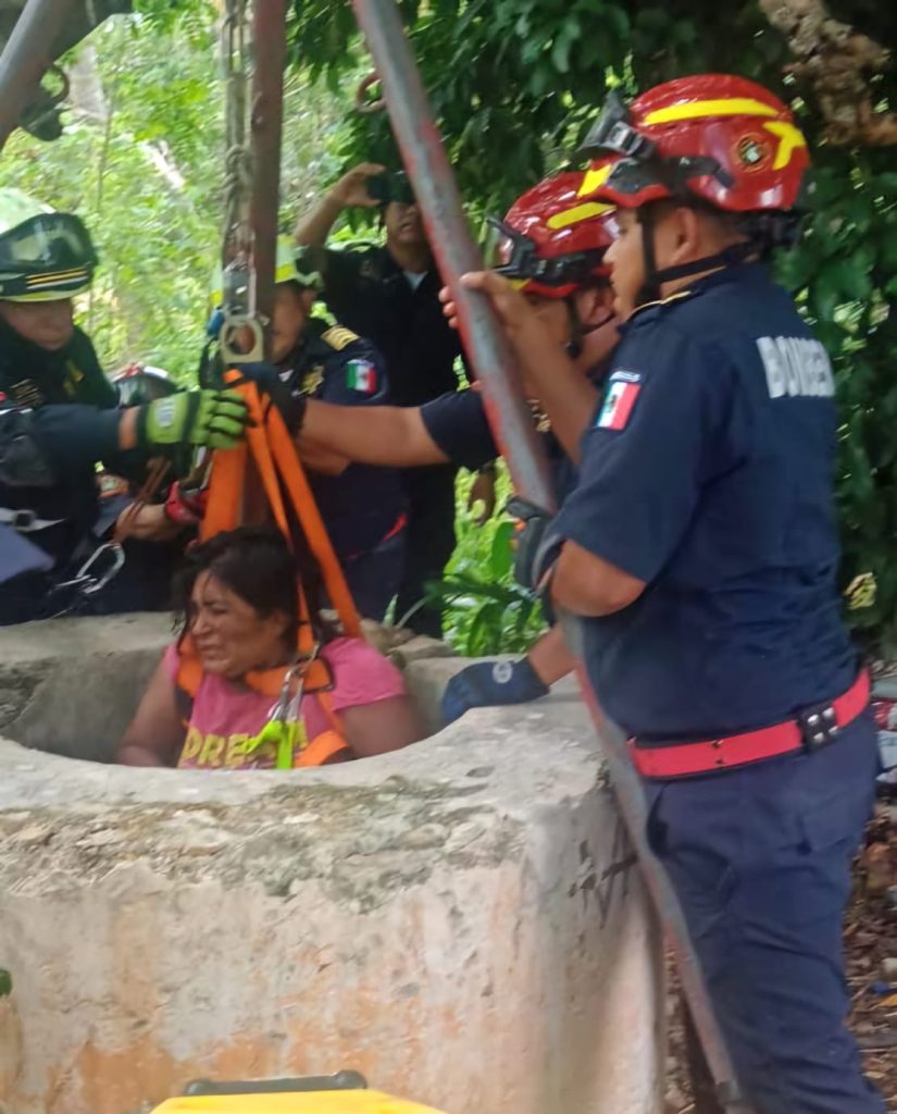 Cacalchén, Yuc. a 25 de agosto.- Una fémina de 32 años fue rescatada por los bomberos de la SSP después de que se arrojó a un pozo seco de mas de 10 metros de profundidad.