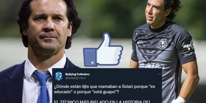 El perfil ‘Bullying Futbolero’ publicó “¿Dónde están l@s que mamaban a Solari porque “es educado” o porque “está guapo”? EL TÉCNICO MÁS INFLADO EN LA HISTORIA DEL AMÉRICA” y Óscar Jiménez le dio like.