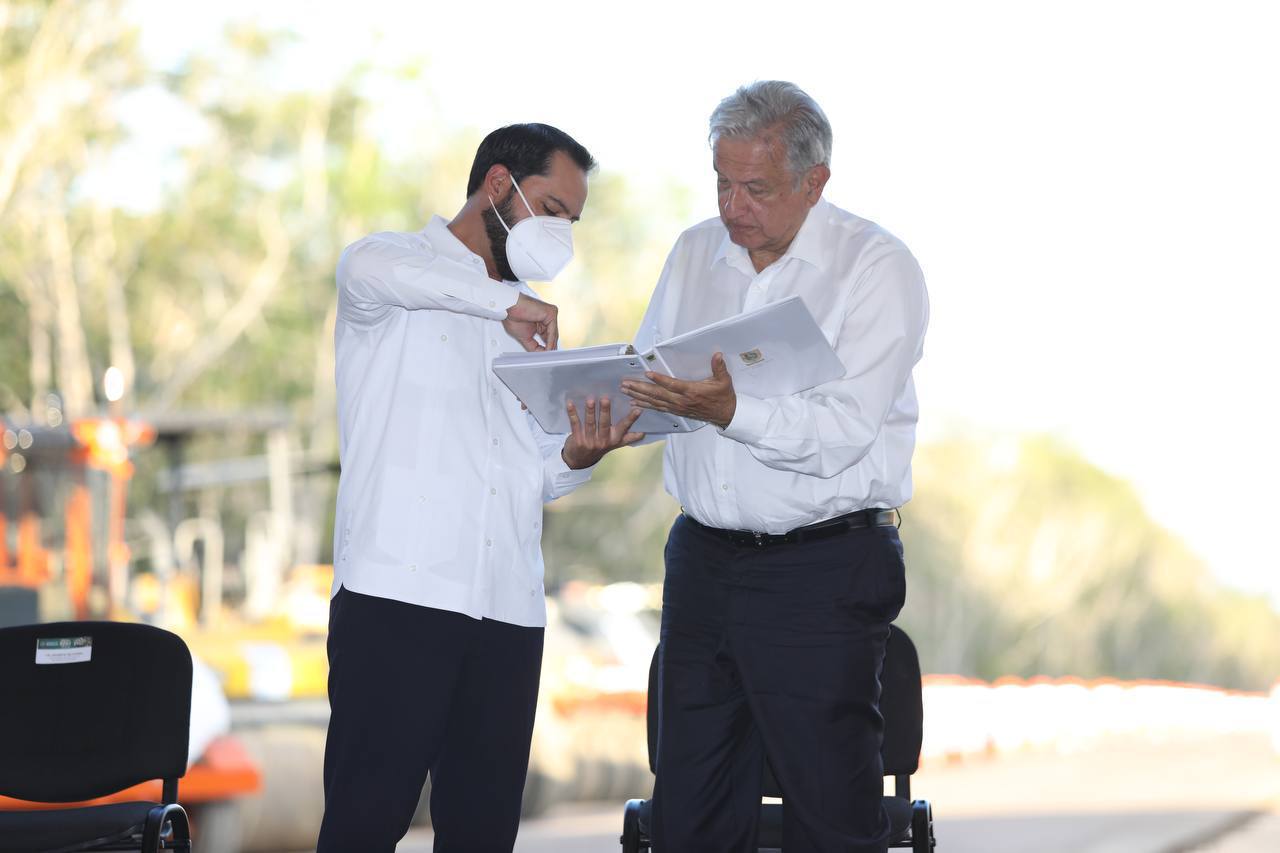 -En la supervisión del tramo 4 Izamal-Cancún del proyecto del Tren Maya, Vila Dosal entregó al jefe del Ejecutivo una petición firmada por los presidentes municipales yucatecos para adherirse al acuerdo nacional en favor de la democracia