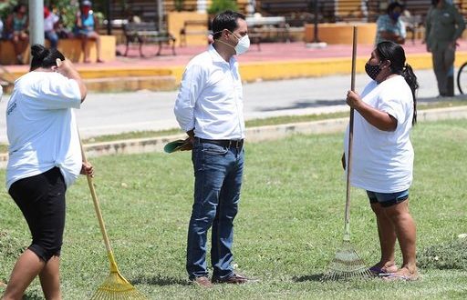 Posteriormente, en el municipio de Sotuta, Vila Dosal también supervisó las tareas de limpieza de alcantarillas, desinfección, descacharrización, deshierbo de áreas verdes, pintura de guarniciones, lechado de árboles y mejoramiento en general de espacios públicos que realizan los participantes del Programa Emergente de Apoyo Comunitario.