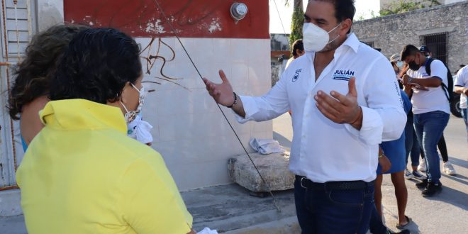 Progreso, Yucatán 08 de mayo de 2021.- Vecinos de la colonia Juan Montalvo recibieron ayer por la tarde la presencia del candidato a la presidencia municipal de Progreso por el Partido Acción Nacional (PAN), Julián Zacarías Curi, quien estuvo acompañado de su esposa Alma Rosa Gutiérrez Novelo; ambos además de escuchar los diversos puntos de vista de la gente y las necesidades que aún existen en el municipio, resaltaron cuán importante es la participación de la ciudadanía para sacar adelante a Progreso.
