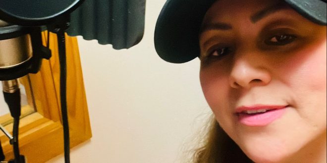 Sonyta Garcia grabando “Es lo que siento” en la ciudad de San Juan Texas.