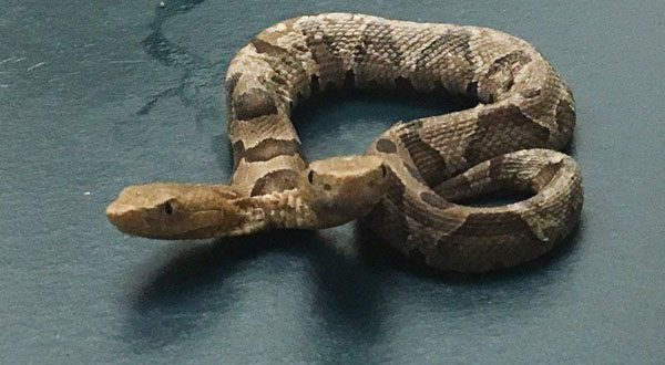 El Centro de Vida Silvestre de Virginia dijo que la serpiente cabeza de cobre oriental de dos cabezas fue encontrada en un vecindario del norte de Virginia la semana pasada. Indicó que un herpetólogo estatal la llevó al hospital para un examen.