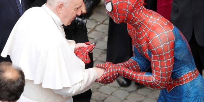 Al final de la audiencia, fue presentado al Papa y le dio al pontífice una máscara de Spider-Man.