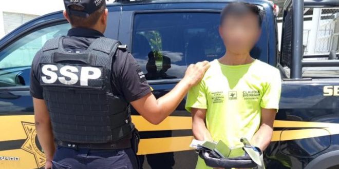 Elementos de la SSP detuvieron a Wilberth Eloy “N”, de 25 años, de oficio albañil, acusado de robo con violencia en un predio particular de la colonia Emiliano Zapata Sur III.