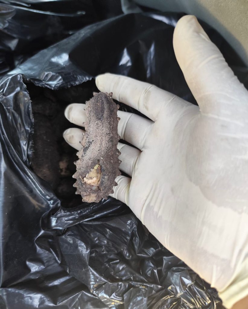 Mérida, Yucatán, 25 de mayo de 2024.- Al realizar una inspección de vigilancia, elementos de la Secretaría de Seguridad Pública (SSP) lograron el aseguramiento de 203 kilos de pepino de mar en un vehículo particular, por lo que la unidad y su conductor fueron consignados a la Fiscalía General de la República (FGE), toda vez que se trata de un delito del orden federal.