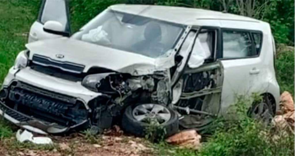 El fuerte accidente se registró la mañana de este domingo en la carretera Tixpéhual – Tixkokob, entre un automóvil particular y un autobús de la línea del Centro.