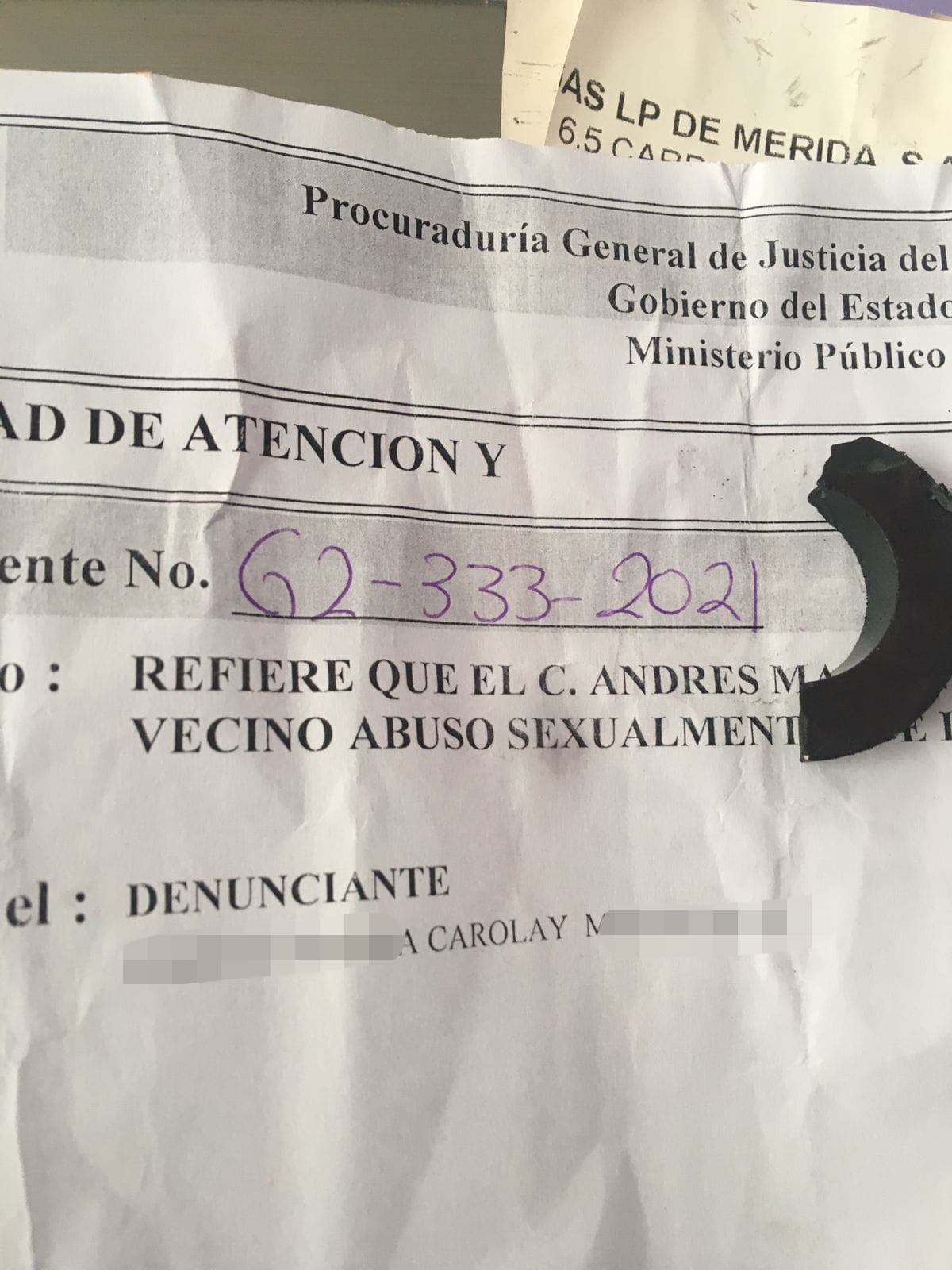“Cuando llegué a casa de su vecino cuyo nombre es Andrés C., me dijo que yo pase, yo pase ya que nunca me imaginé que iba a ocurrir después. Cuando entré le entregué las mascarillas, cuando de pronto me sujetó de mis manos y me dijo que lo besara yo le dije que no quería y siguió́ insistiendo, le decía a cada rato que no quería que por favor me soltara ya que a fuera está mí abuela y mi hija (le mentí́, pero era para que dejara ir)” relató la joven.