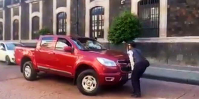 A través de Twitter, el alcalde de Toluca, Juan Rodolfo Sánchez Gómez, compartió la grabación. En esta, se aprecia cómo la mujer policía intenta multar al automovilista.