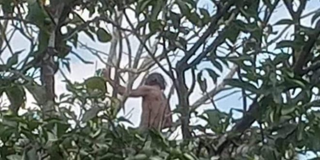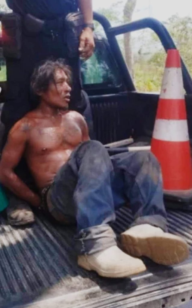 Tizimin, Yucatán. – 26 Abril 2024.- Con tal de no ser detenido luego de agredir con un machete a vecinos de Popolnah, comisaría de Tizimín, Lázaro U.E. se subió a un árbol, pero como no sabe volar, tuvo que bajar de nuevo y fue así que lo arrestaron agentes policiacos.