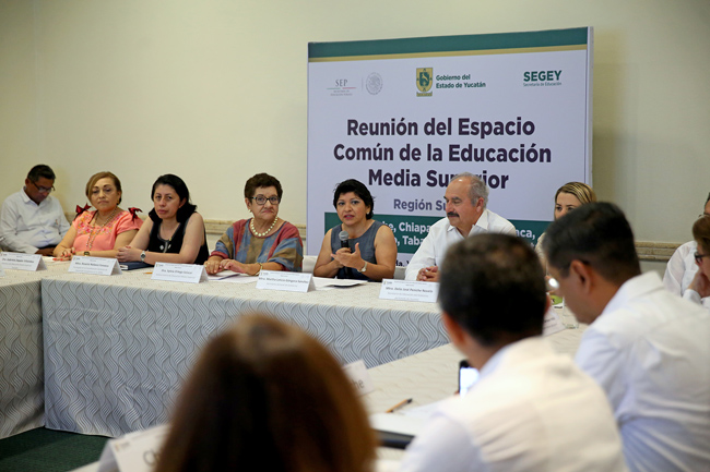 A nombre del titular del Poder Ejecutivo, Rolando Zapata Bello, la funcionaria dirigió un mensaje a las y los asistentes a la reunión de integración del Sistema Nacional de Educación Media Superior (Sinems) de la zona sureste, conformada por Campeche, Oaxaca, Guerrero, Quintana Roo, Chiapas, Tabasco, Veracruz y Yucatán.