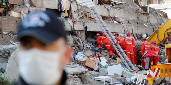 Un total de 17 edificios colapsaron en varios barrios de esa urbe de 4 millones de habitantes el viernes, cuando hacia el mediodía se produjo el sismo, con epicentro en el Egeo.