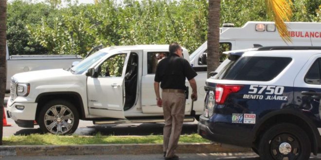 a agresión ocurrió este sábado en el kilómetro 2.5 de la avenida Bonampak, cuando hombres armados que viajaban en un vehículo color plata atacaron a disparos a los ocupantes de una camioneta pick up color blanco, con placas de Jalisco.