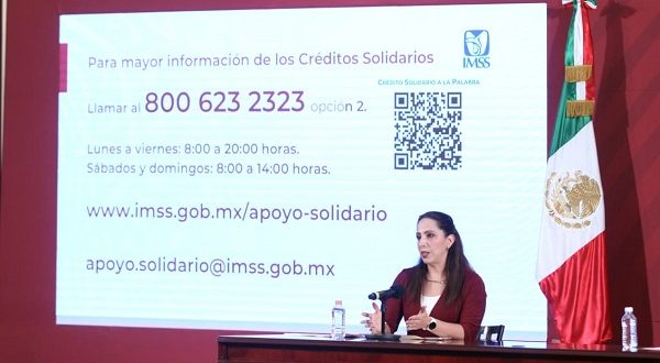 La directora de Incorporación y Recaudación puso a disposición la línea de orientación telefónica a través del 800 623 2323, opción 2, para atender cualquier duda de lunes a viernes de 08:00 a 20:00 horas, así como sábados y domingos de 08:00 a 14:00 horas, además del correo apoyo.solidario@imss.gob.mx para resolver dudas.