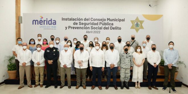 Mérida, Yucatán a 18 de abril de 2022.- De la mano de la sociedad civil, universidades e instituciones de diversos órdenes de gobierno, el Alcalde Renán Barrera Concha instaló el Consejo Municipal de Seguridad Pública y Prevención del Delito para sumar esfuerzos y trabajar en conjunto para velar por el bienestar de los habitantes y de quienes visitan Mérida.