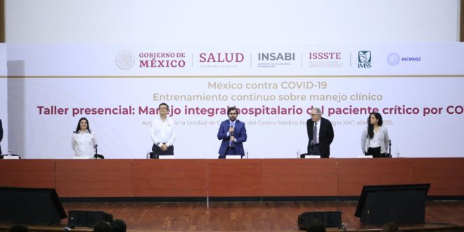 En atención a la emergencia sanitaria, el Instituto Mexicano del Seguro Social (IMSS) y el Instituto de Salud para el Bienestar (INSABI) inauguraron hoy el “Taller presencial: Manejo Integral Hospitalario del Paciente Crítico por COVID-19” para brindar atención oportuna y especializada a quienes se contagien por este virus.