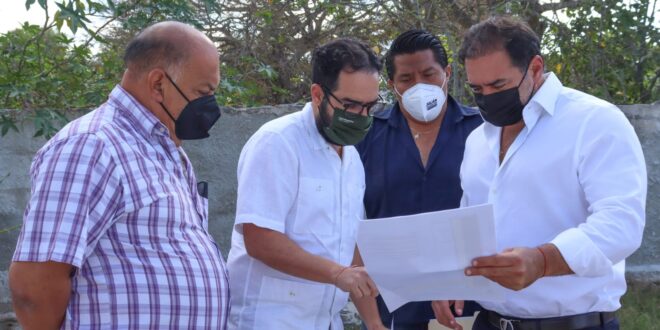 Progreso Yucatán a 7 de Marzo 2022.- El alcalde Julián Zacarías Curi acompañado del Director de Cementerios, Armando Reyes Maldonado, visitó la comisaría de Chelem, para supervisar la limpieza del cementerio municipal.