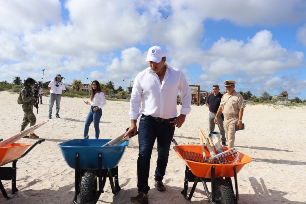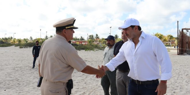 PROGRESO, 16 de agosto 2022. – El alcalde Julián Zacarías Curi acudió a las playas del puerto con el objetivo de supervisar los trabajos que se realizan como parte de las acciones y estrategias llevadas a cabo ante la presencia de la marea roja.