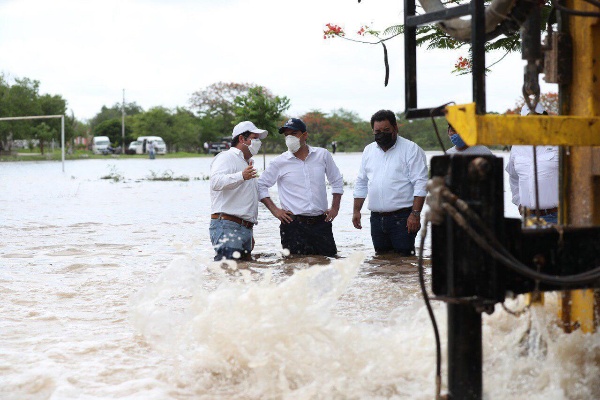Entregó agua purificada, maíz, alimentos y víveres para ayudarlos a sobrellevar estos días difíciles. Constató las afectaciones y supervisó el inicio de los trabajos de perforación de pozos pluviales para que disminuya el nivel del agua tras las inundaciones por la tormenta tropical Cristóbal.
