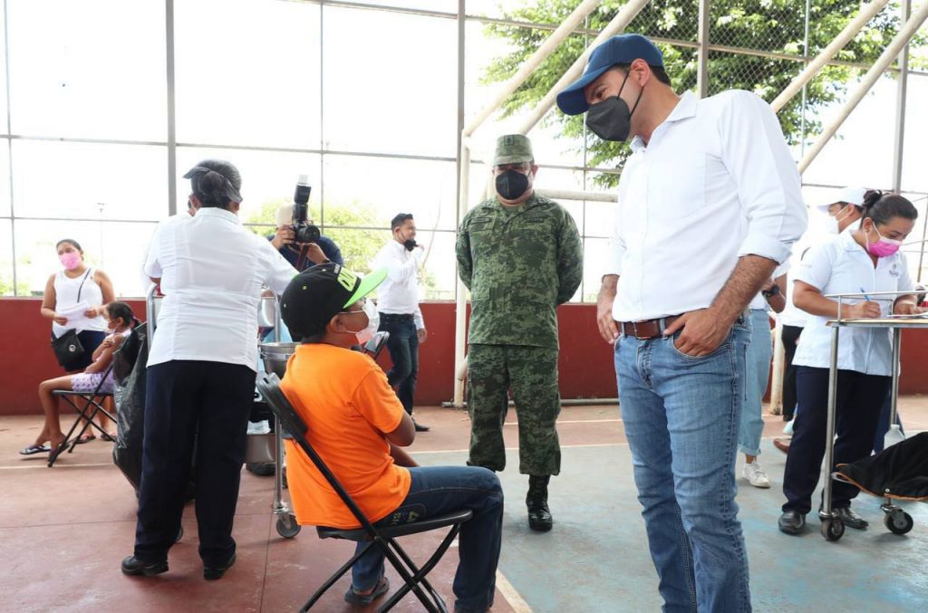 Acompañado del titular de la Secretaría de Salud (SSY), Mauricio Sauri Vivas, el Gobernador recorrió el espacio para constatar que este proceso se desarrolle correctamente y en orden; igual, aprovechó para saludar a los infantes y conversar con sus padres, acerca de la importancia de la vacunación y la tranquilidad que representa para ellos que sus hijos cuenten con esta protección.
