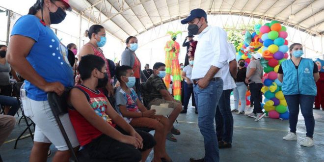 Ticul, Yucatán, 10 de agosto de 2022.- Botargas, malabaristas en zancos, arcos de globos y música enmarcaron el operativo de vacunación contra el Coronavirus, para niñas y niños de 5 a 11 años de edad, que se realiza en Ticul desde el pasado lunes y, este día, supervisó el Gobernador Mauricio Vila Dosal, con lo que Yucatán sigue avanzando en la preservación y el cuidado de la salud de su población.