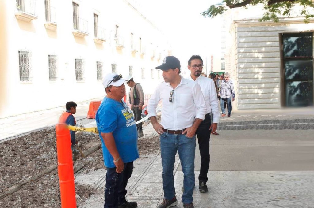 -Vila Dosal recorrió la obra a cargo del Gobierno del Estado que comprende desde la zona de remate de Paseo de Montejo, el parque de Santa Ana y toda la 60 hasta Palacio de Gobierno, donde constató las labores que se realizan.