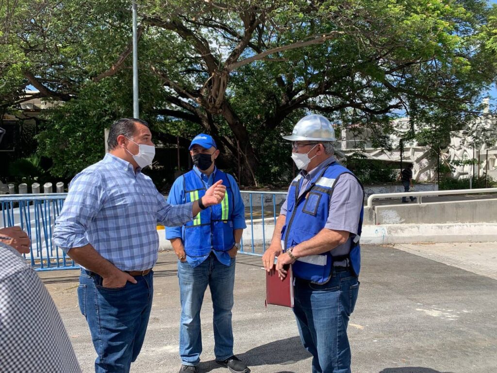 En la visita al lugar estuvo acompañado por representantes del Colegio de Ingenieros y el director de Obras Públicas, David Loría Magdub, quieres explicaron los detalles y avances del proyecto.