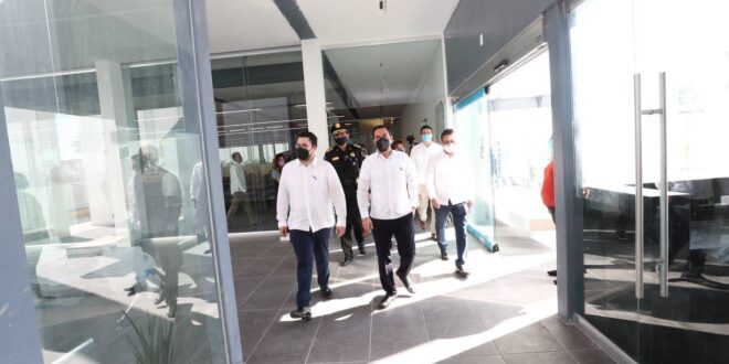 Acompañado del titular de la Secretaría de Seguridad Pública (SSP), Luis Felipe Saidén Ojeda, y de los comandantes de la IX Zona Naval, vicealmirante Adrián Hermilo Valle González, y del 11 Batallón de Infantería, coronel Gustavo Caratachea Esparza, Vila Dosal recorrió el edificio, ubicado en las instalaciones de la corporación policíaca, que presenta un notable avance y se espera que esté totalmente listo a finales de este año.