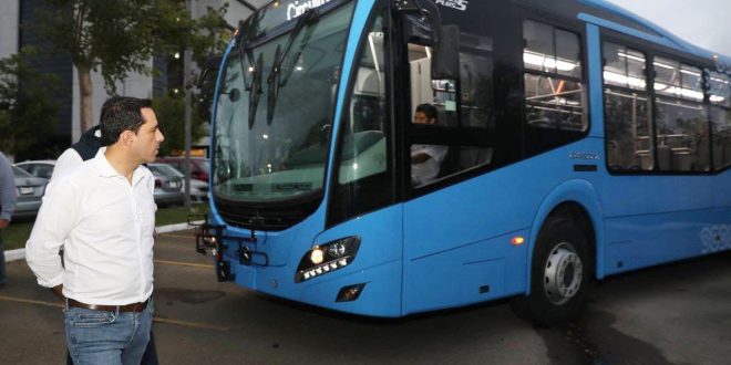 -Vila Dosal constató la tecnología con que cuentan los nuevos autobuses de la marca Mercedes Benz, que forman parte de la flotilla de 350 nuevas unidades dentro de dicha estrategia, cuyas primeras 40 estarán llegando en enero próximo.