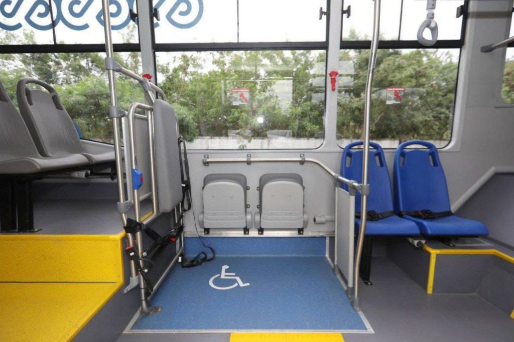 En el recorrido, el Gobernador corroboró que las unidades son incluyentes, pues tienen entradas más bajas, que permiten accesibilidad universal, espacios especiales, cómodos y seguros para los usuarios en silla de ruedas, así como racks para llevar bicicletas y señalética en sistema braille para personas con discapacidad visual, que sirven para indicar los asientos preferentes.