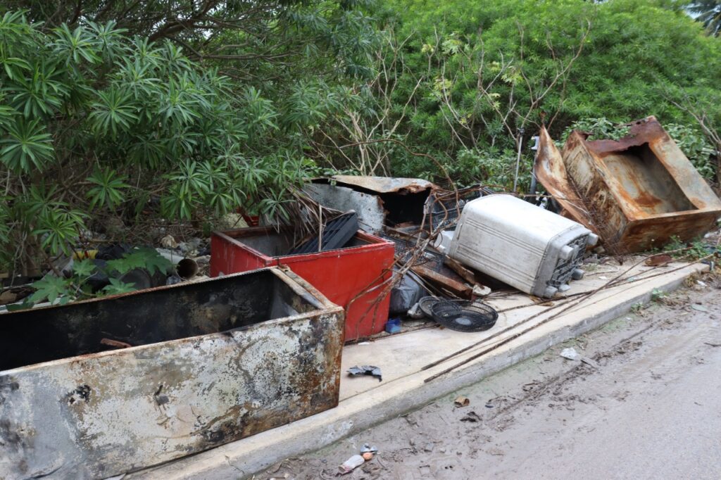 Progreso Yucatán a 4 enero 2022.- Con el objetivo de atender los reportes hechos por los vecinos de la zona, cuadrillas de trabajadores de la Dirección de Prolimpia, en coordinación con la Dirección de servicios públicos, realizaron trabajos de limpieza del basurero clandestino de Chelem, mismo que era usado como góndola de transferencia.