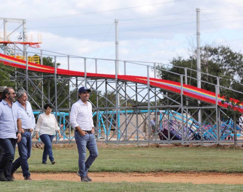 Acompañado del director general del Instituto para el Desarrollo y Certificación de la Infraestructura Física Educativa y Eléctrica de Yucatán (Idefeey), Luis Jorge Montalvo Duarte y del director general del Instituto del Deporte (IDEY), Jorge Antonio Esteban Abud; Vila Dosal recorrió el área de construcción en la colonia San José Tecoh, donde ya se encuentran instaladas grandes estructuras en las distintas áreas que conformarán este nuevo sitio recreativo.