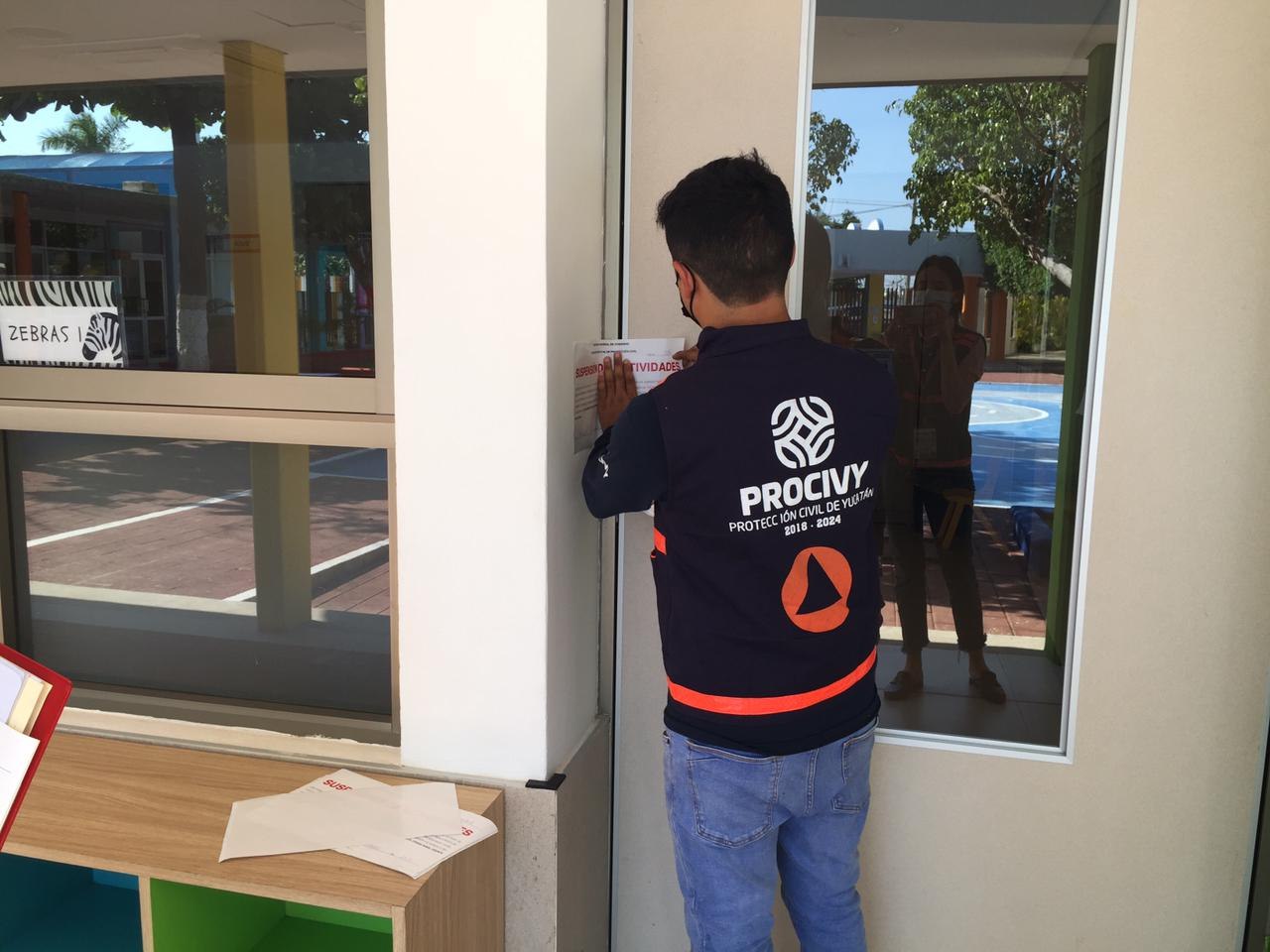 Como parte de un operativo de vigilancia, elementos de la Secretaría de Salud del estado (SSY) y la Coordinación Estatal de Protección Civil (Procivy) acudieron a las instalaciones de dicho colegio, ubicado al norte de esta ciudad, en donde opera el área de guardería, único servicio que está autorizado.