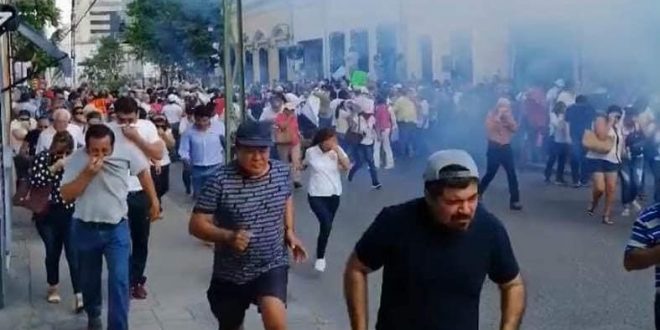 MÉRIDA, Yuc., 19 de enero de 2020.- En conferencia de prensa realizada esta tarde, el Comandante de la Secretaria de Seguridad Pública, Luis Felipe Saidén Ojeda manifestó que la granada de gas lacrimógeno fue respuesta a una agresión violenta contra los policías, sin embargo el oficial que la activó fue suspendido y está siendo investigado por asuntos internos.