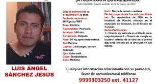 La última vez que fue visto Luis Ángel Sánchez Jesús fue cuando salió de su casa en Hunukú, comisaría de Temozón MÉRIDA, Yuc., 30 de marzo 2022.- La familia del joven Luis Ángel Sánchez Jesús no cesa en sus intentos para tratar de localizarlo, pues desde septiembre de 2018 está desaparecido y no se …