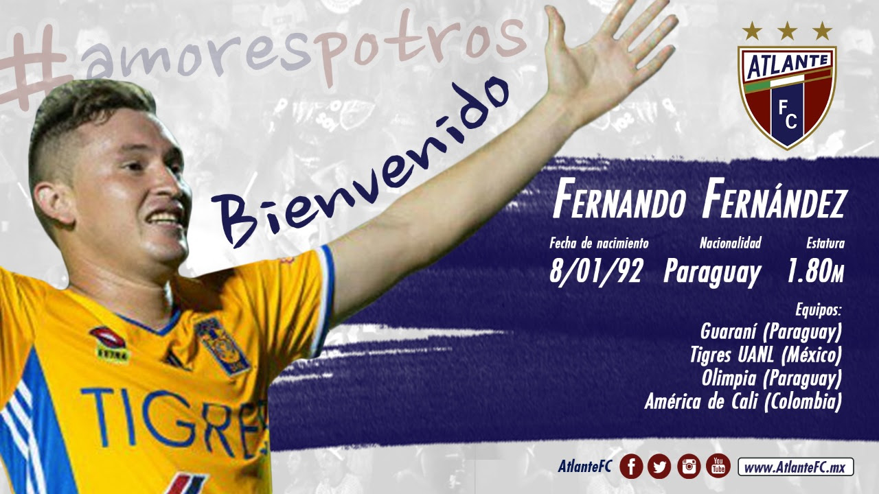 Cancún Q. Roo.- Club Atlante hace oficial la contratación del centro delantero Paraguayo Fernando Fabián Fernández Acosta. La directiva logró llegar a un acuerdo con el ariete y a la brevedad se reportará con el cuerpo técnico para unirse a las prácticas. Fernando Fernández nació en Capiatá, Paraguay, tiene 26 …