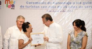 El Alcalde Alejandro Ruz Castro entrega por primera ocasión reconocimientos a las y los guías de turistas con más de 35 años de trayectoria. Mérida, Yucatán, a 7 de agosto de 2024-. Por ser embajadores del patrimonio cultural y natural del Municipio, así como contribuir a que las y los …