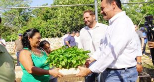Visita huertos de traspatio de beneficiarias de Oncán Mérida, 22 de septiembre de 2018. En su primera actividad en comisarías, el alcalde Renán Barrera Concha visitó este sábado a mujeres productoras de Oncán para verificar los avances logrados por medio del programa de huertos de traspatio que fomentó en su …