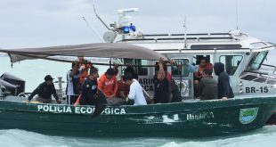 Progreso, Yucatán a 27 de enero de 2023. Esta mañana, la Policía Ecológica y personal del Programa de Investigación y Conservación de Mamíferos Marinos de Yucatán (PICMMY) de la UADY, liberaron el delfín herido que varó ayer en playas del malecón tradicional. El cetáceo fue encontrado por salvavidas de “Blue …