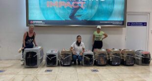 Progreso, Yucatán a 25 de enero 2022.- Esta mañana los perritos rescatados por Tracy Ginger en su centro de rehabilitación “Jungle rescue”, emprendieron su viaje a Canadá para ser adoptados, donde la Titular de la Unidad de educación ambiental a cargo de María José Ongay, acompaño a estos animalitos para …