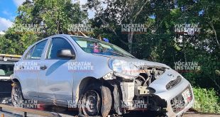 Federico Azul/ Yucatán al Instante Kinchil, Yuc., a 22 de agosto.- El cuento de nunca acabar en el tramo federal sin acotamiento, la Kinchil-Celestún, donde cada semana están siendo más frecuentes los percances, ahora tocó el turno a un poblano, quien conducía un March, pero ‘mordió’ el borde del pavimento …