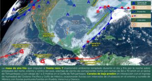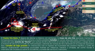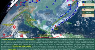 En la madrugada se prevé marcado descenso de temperatura en regiones del norte, noreste, centro y oriente de México, con heladas en zonas serranas. Para el sábado se prevén lluvias intensas en Campeche, Chiapas, Tabasco y Veracruz. MÉRIDA, Yuc., 13 de noviembre 2021.- En las próximas horas se …