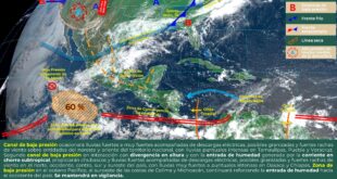 MÉRIDA, Yuc., 8 de junio 2021.- En las próximas 24 horas, se prevé cielo medio nublado a nublado, con probabilidad para chubascos con tormentas dispersas. Temperaturas calurosas a muy calurosas durante el día y cálidas al amanecer. Se prevé que debido al ingreso de aire marítimo tropical, en combinación con …