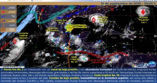 MÉRIDA, Yuc., 20 de septiembre 2020. – En las próximas 24 horas, se prevé cielo medio nublado a nublado, con probabilidad de chubascos con tormentas, con temperaturas calurosas a muy calurosas durante el día y cálidas al amanecer. Una vaguada profunda asociada a la tormenta tropical “Beta” se extenderá hasta …