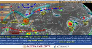 MÉRIDA, Yuc,, 18 de septiembre de 2020.- En las próximas 24 horas, se prevé cielo medio nublado a nublado, con probabilidad para tormentas, con temperaturas calurosas a muy calurosas durante el día y cálidas al amanecer. La depresión tropical “Veintidós” se desplazará sobre el centro y norte del golfo de …