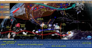 MÉRIDA, Yuc., 19 de julio 2020.- En las próximas 24 horas, se prevé cielo parcialmente nublado a medio nublado con probabilidad de intervalo de chubascos y tormentas, con temperaturas calurosas a muy calurosas durante el día y cálidas al amanecer. La onda tropical No. 18 y la vaguada en el …