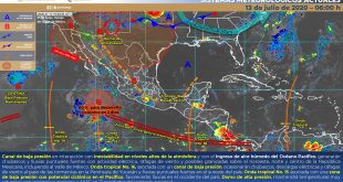 MÉRIDA, Yuc., 13 de julio 2020.- En las próximas 24 horas, se prevé cielo medio nublado a nublado, con probabilidad de chubascos acompañados de tormentas, con temperaturas calurosas a muy calurosas durante el día y cálidas al amanecer. El ingreso de aire cálido y húmedo proveniente del mar Caribe hacia …